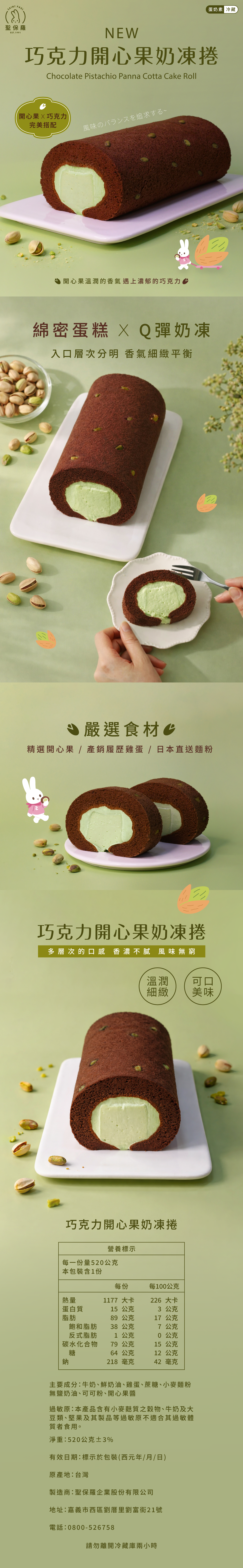 彌月-巧克力開心果奶凍捲【冷藏/蛋奶素】