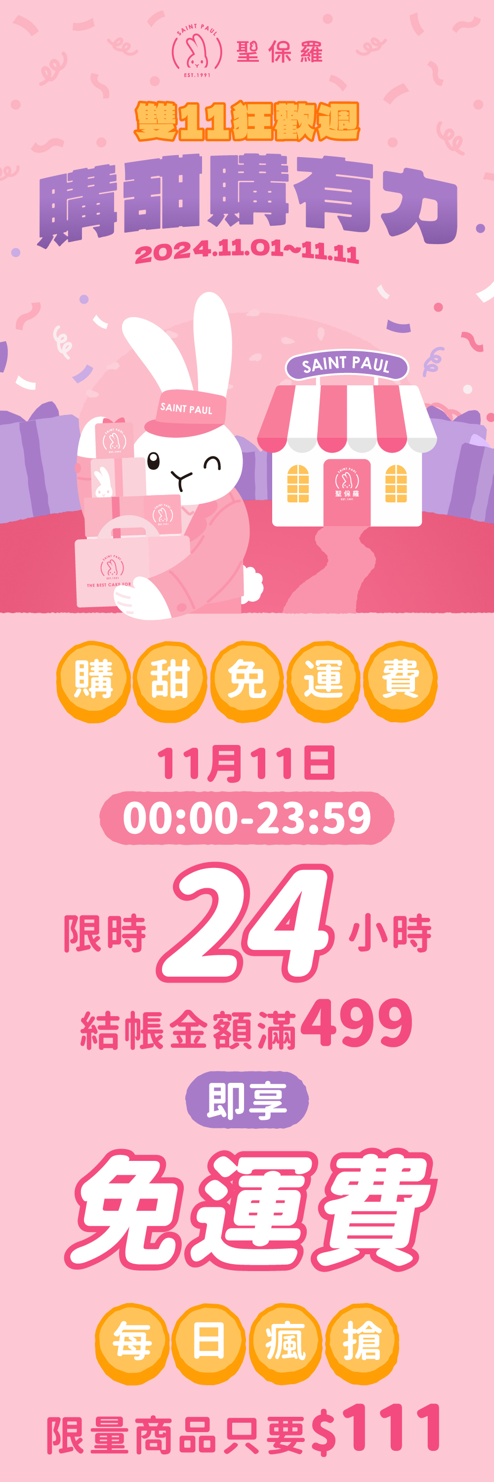 🎉雙11購物節開跑!全館滿$1111免運|$2222送好禮|$3333再折$333🔥