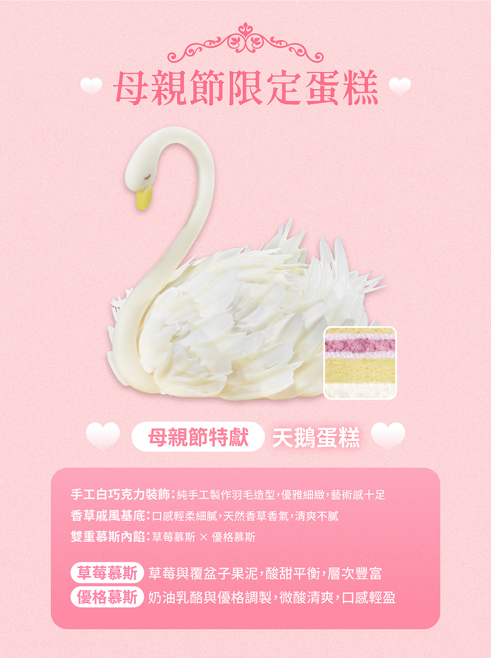 ※天鵝蛋糕為單一尺寸6吋大小