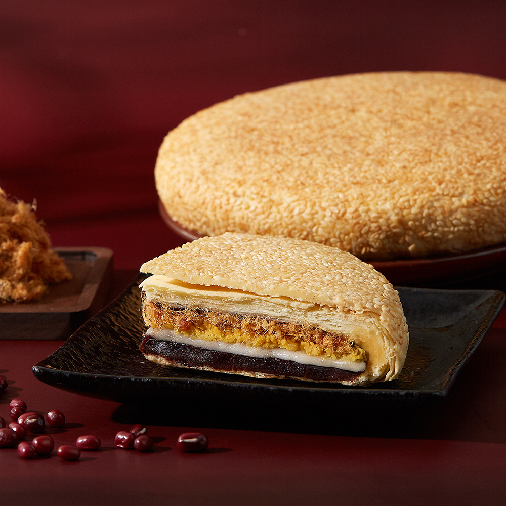 ● 麻糬、鹹鴨蛋黃、肉脯與紅豆餡的完美結合