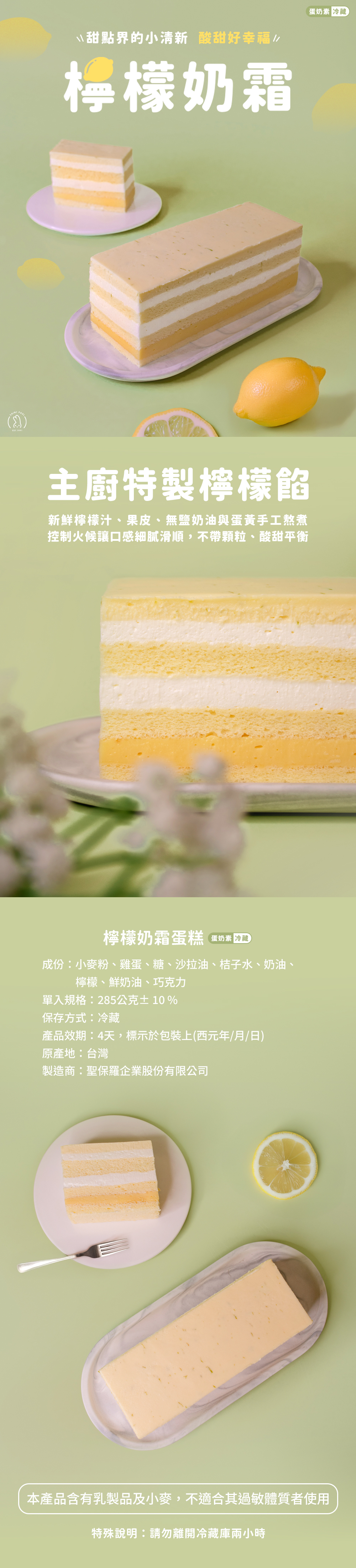 ●香草戚風、檸檬餡與鮮奶油層層交錯,口感豐富